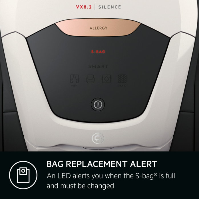 Imediatamente após ligar o aparelho, a luz indicadora S-bag de cor branca acende, mesmo que o saco seja novo e esteja limpo.