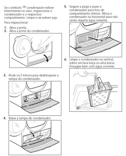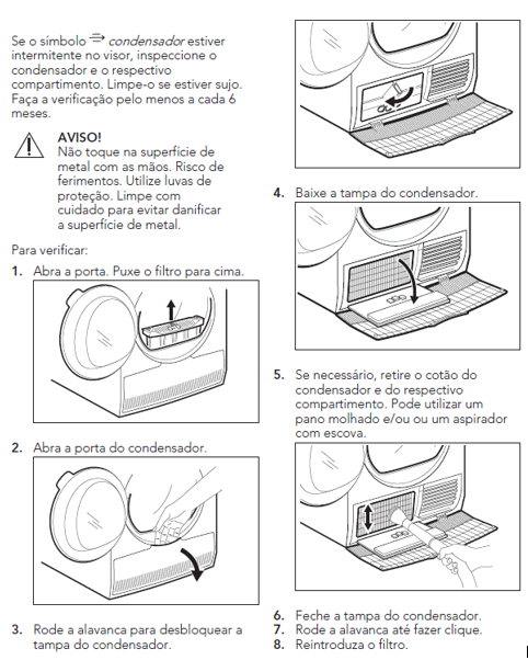 6. Limpe todos os filtros e o condensador (se acessível) regularmente e com cuidado, conforme descrito no manual do usuário.