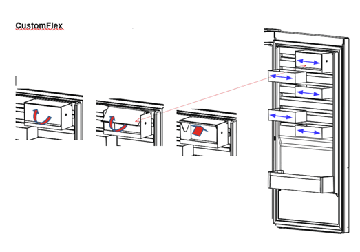 Quando a prateleira está livre de detalhes de montagem do lado direito e esquerdo, você pode retirar a prateleira puxando para si.