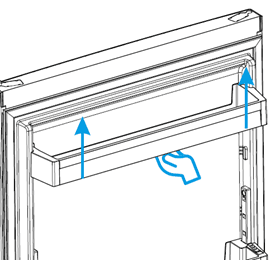 Puxe cuidadosamente a prateleira para cima com as duas mãos, sem dobrar ou torcer a prateleira.